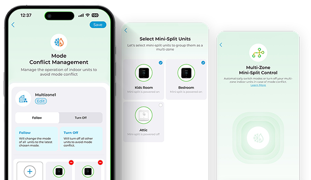 • Multi-Zone Mini-Split Control – This feature prevents mode conflict in multi-zone mini-splits and ensures uninterrupted operation.