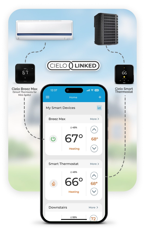 | Cielo Linked Link your central air with room air conditioners using Cielo Smart Thermostat and mini-split controllers. |